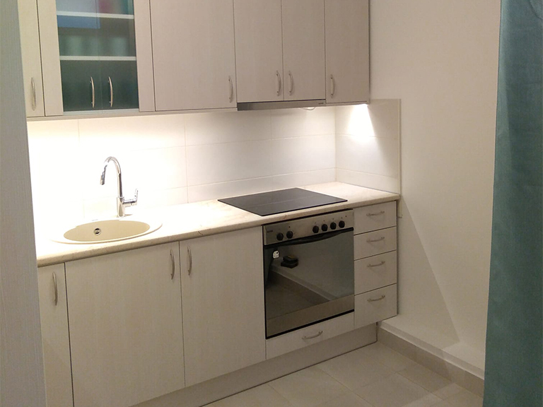 Mindkét helységben lehetőség van masszázságy elhelyezésére, amennyiben a tevékenység megkívánja. A személyzeti konyha hűtővel, mikrohullámú sütővel, kávéfőzővel, vízforralóval, étkészlettel, evőeszközökkel, poharakkal és bögrékkel ellátott helység.